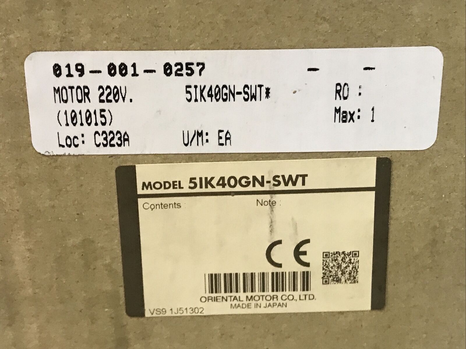 Oriental Motor 5IK40GN-SWT Induction Motor 40w 1600rpm 220/230 V