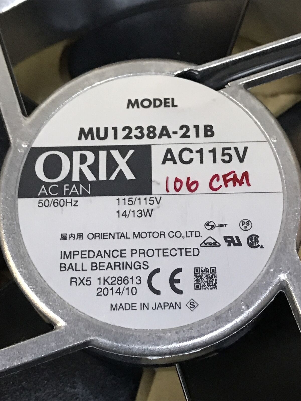 ORIX MU1238A-21B AC115V 14/13W 12cm Aluminum Frame Insert Bearing Ball Fans.