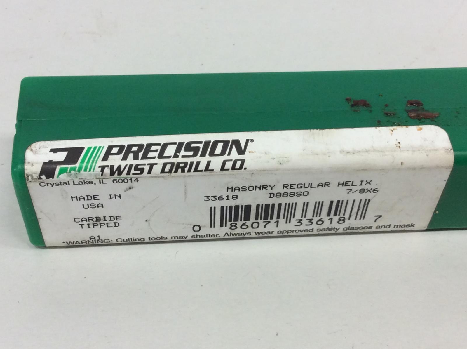 Precision 33618 Masonry Reg HLX Carbide Tipped Black Oxide D888SO 7/8X6