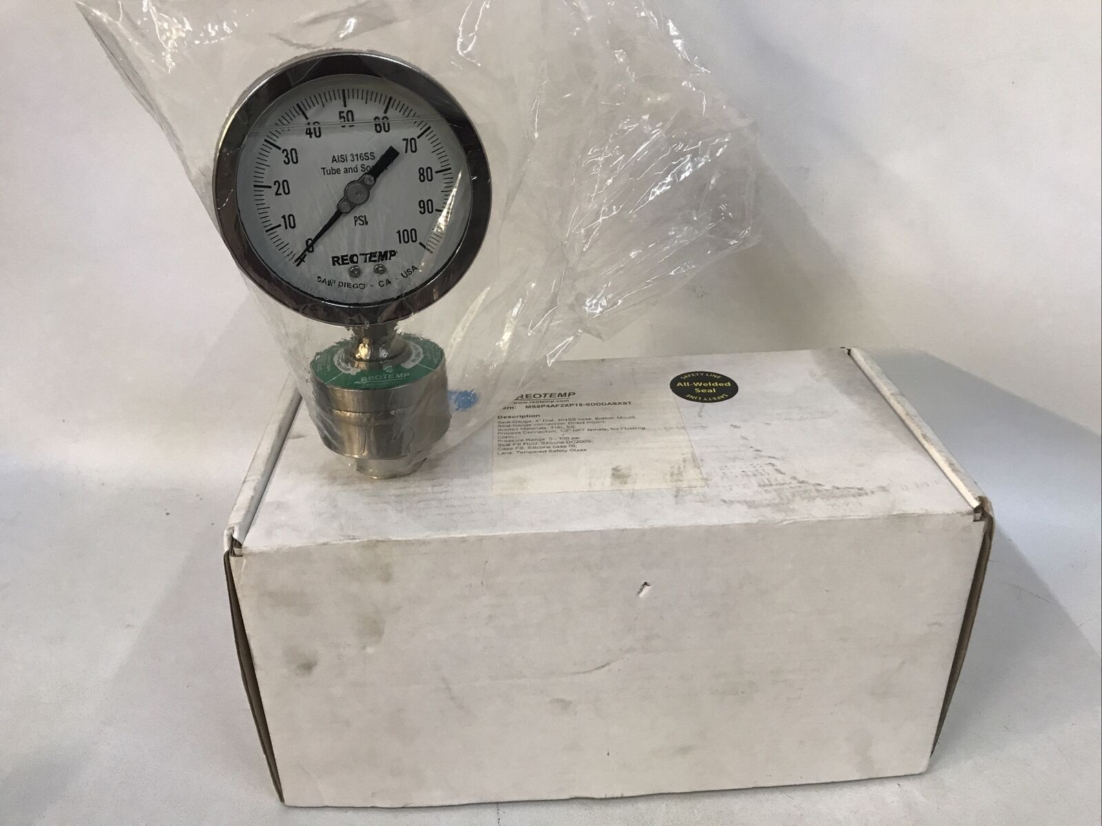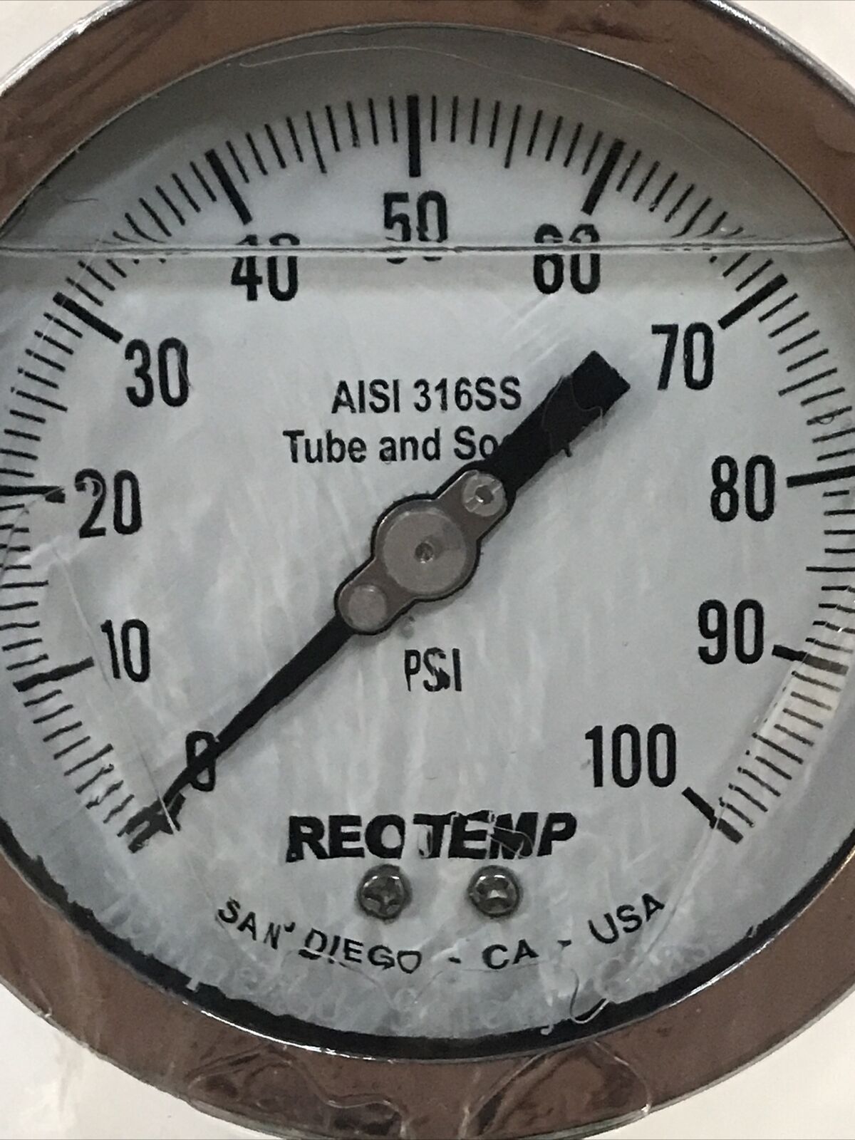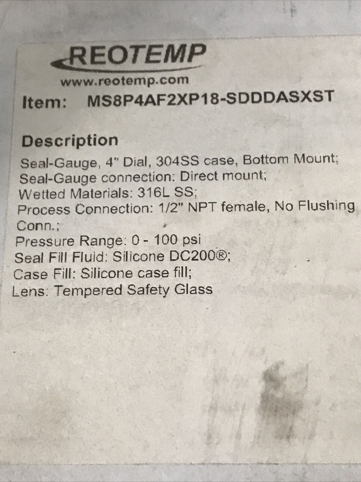 REOTEMP MS8P4AF2XP18-SDDDASXST Pressure Gauge 0-100psi 4” Dial 1/2” NPT, DC200