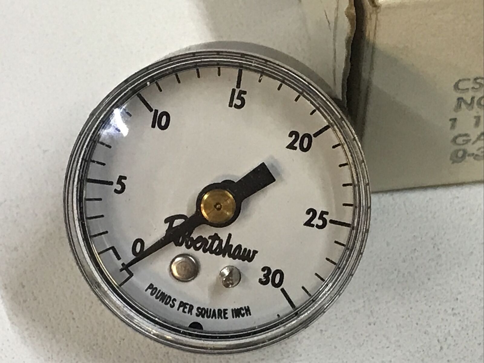 Robertshaw A201-01, 2420-001 Pressure Gauge 1-1/2", 0-30PSIG, 1/8" NPT Back Con.