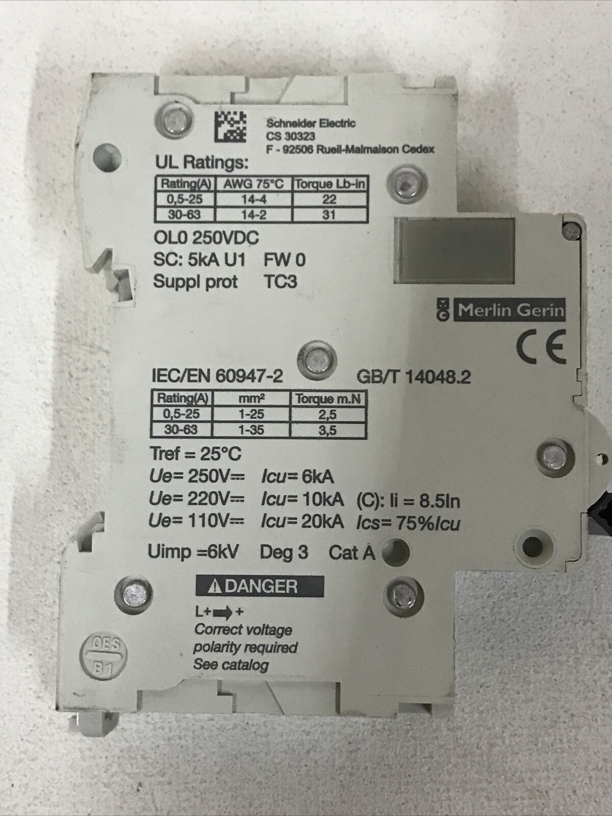 Schneider Electric M9U21110 Multi 9 Circuit Breaker 1P 10A 250VDC 60947-2