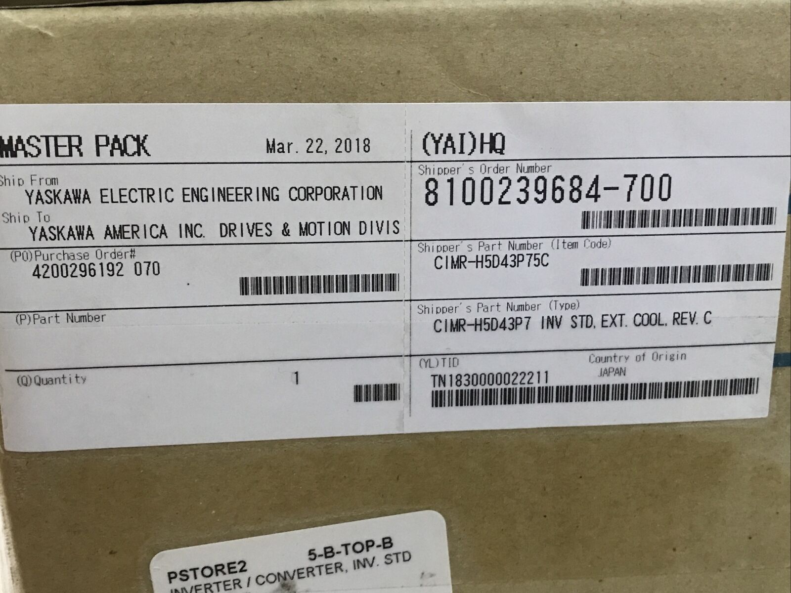 *Sealed* YASKAWA Drive CIMR-H5D43P7 Varispeed 676H5 CIMR-H5D43P75C