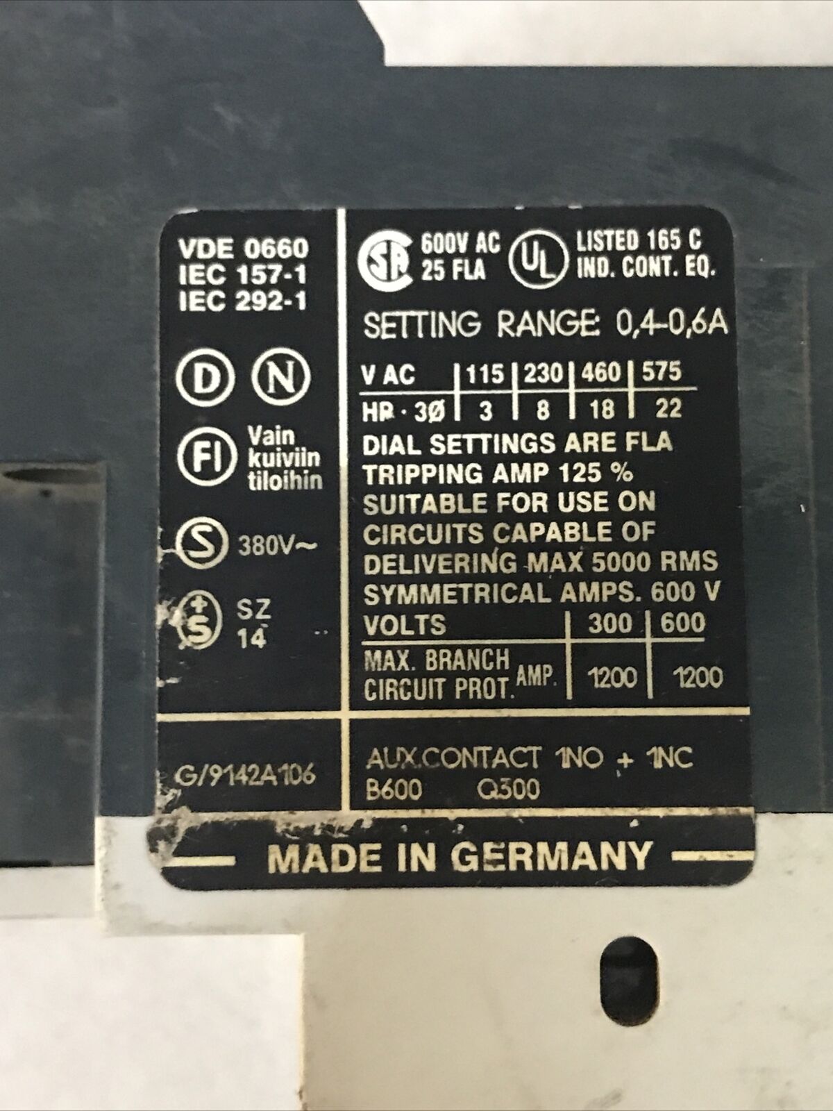 Siemens 3VU1300-1ME00 Starter Motor Protector 0.4-0.6Amp 3 Pole