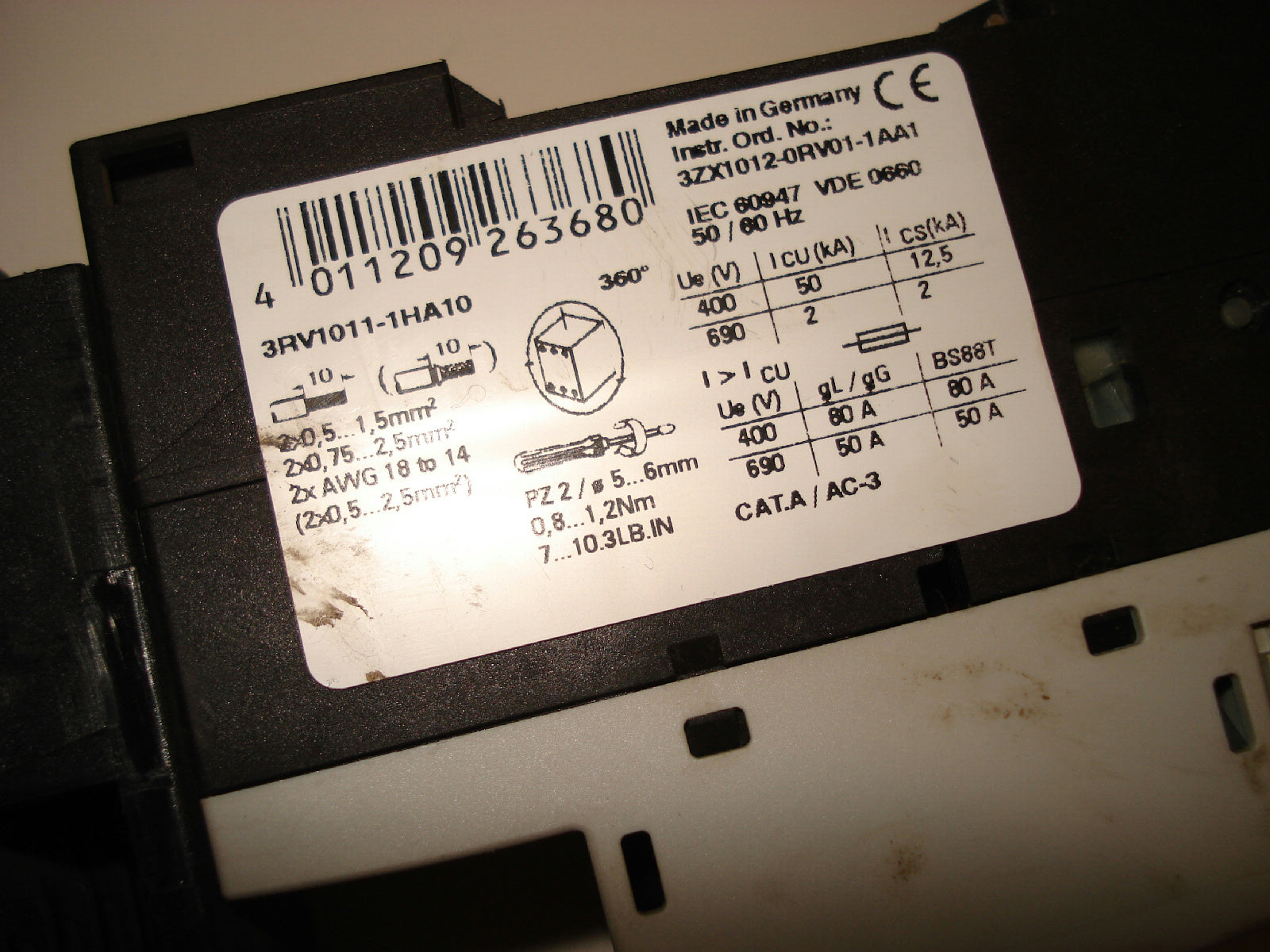 Siemens Sirius 3R 3RV1011-1HA10 Overload & 3RT1016-1BB42 24V 20A Motor Starter