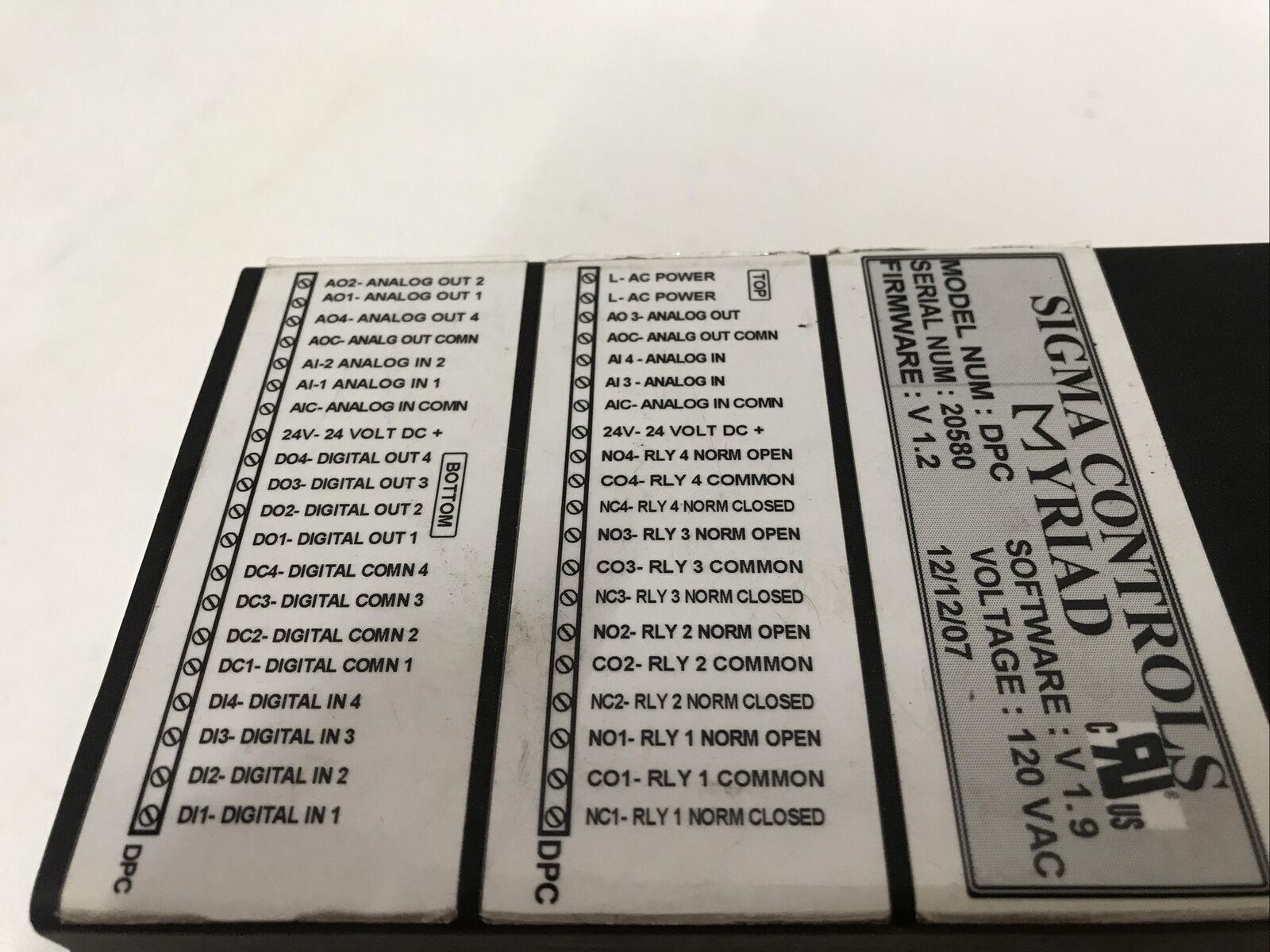 Sigma Controls DPC Myriad Software V 1.9 Firmware V 1.2 120VAC.