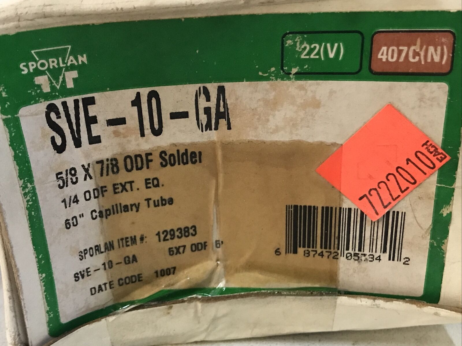 Sporlan SVE-10-GA Thermostatic Expansion Valve 5/8X7/8 ODF Solder 60” Capillary.