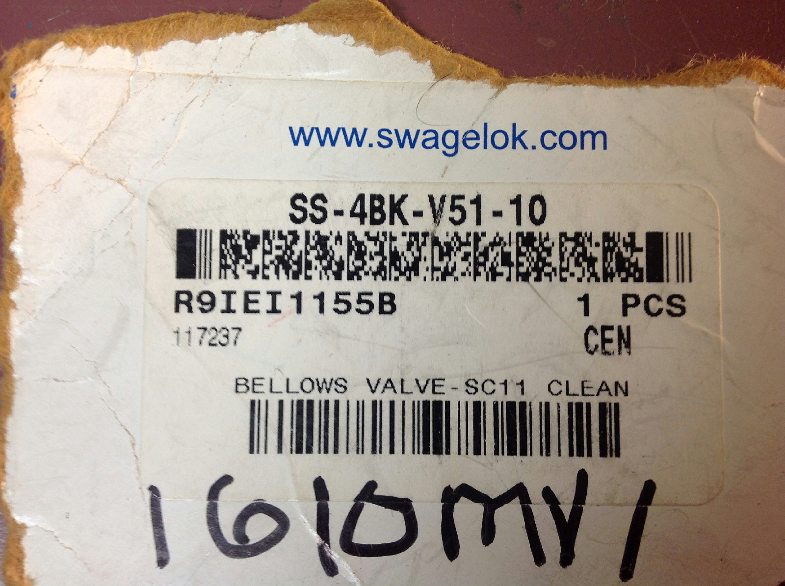 Swagelok SS-4BK-V51-10 SS4BKV5110 Bellows Stainless Steel Valve