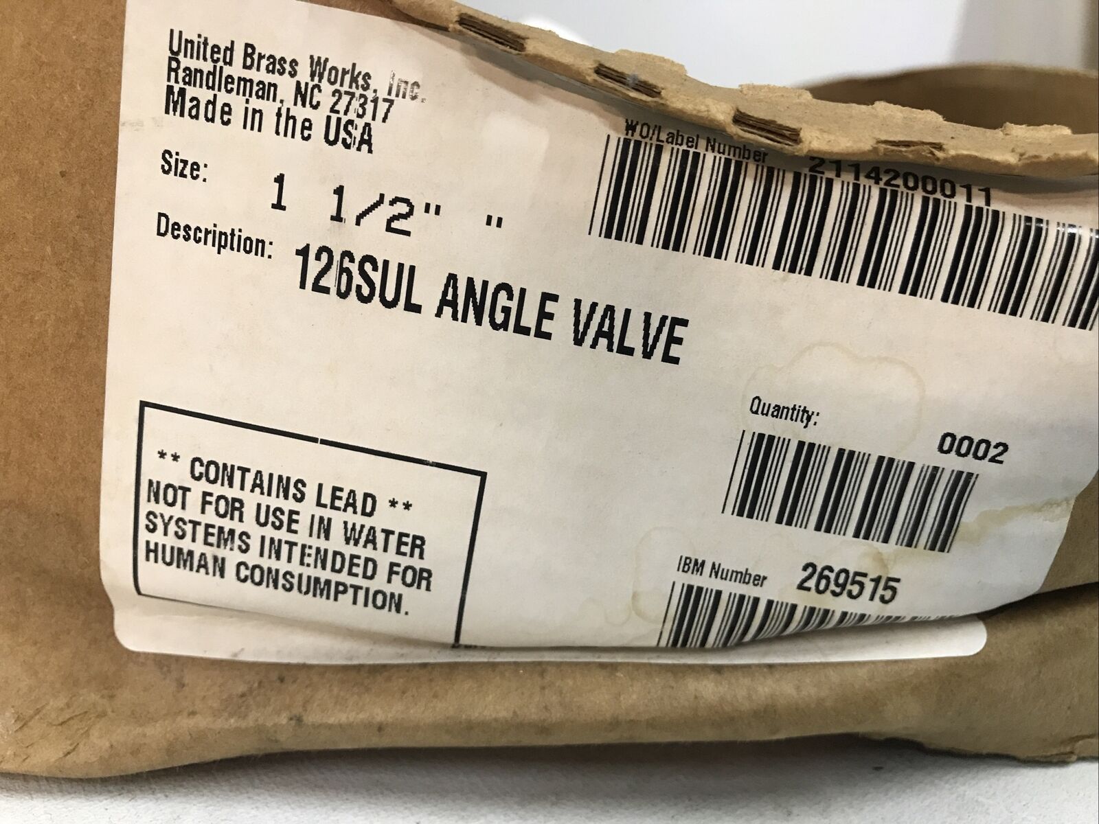 United Brass 126SUL 1-1/2” Angle Valve 125PSI, Threaded.