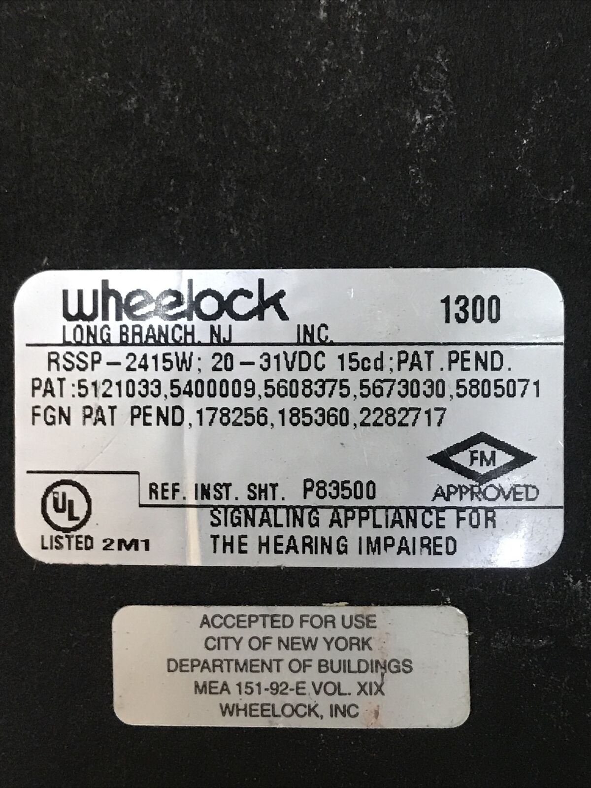 Wheelock RSSP-2415W Fire Alarm Strobe Light 20-31 VDC