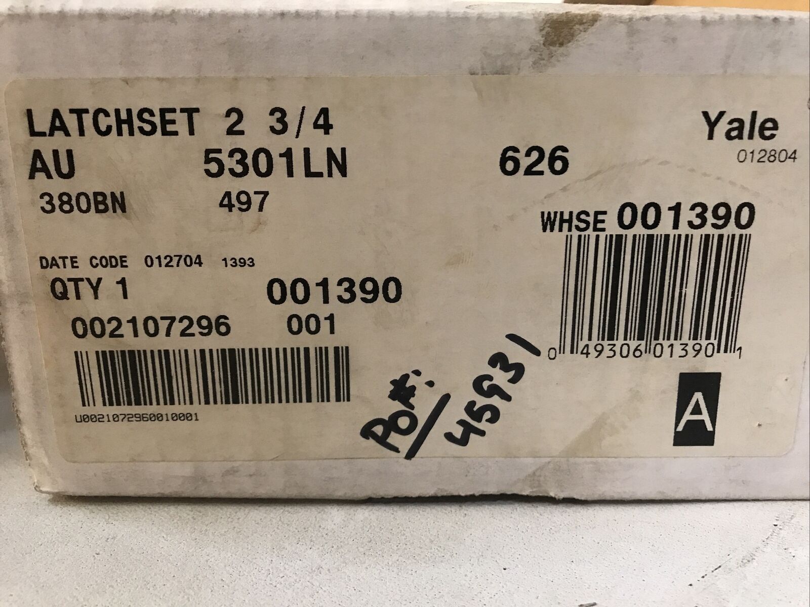 Yale 5301LN Latchset 2 3/4 AU 5300 LN Series NO LOCK