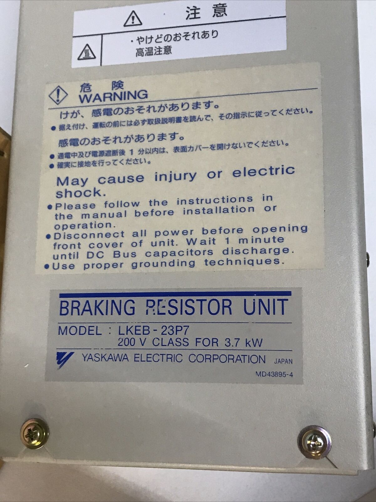YASKAWA ELECTRIC LKEB-23P7 Braking Resistor Unit Varispeed-600 200V