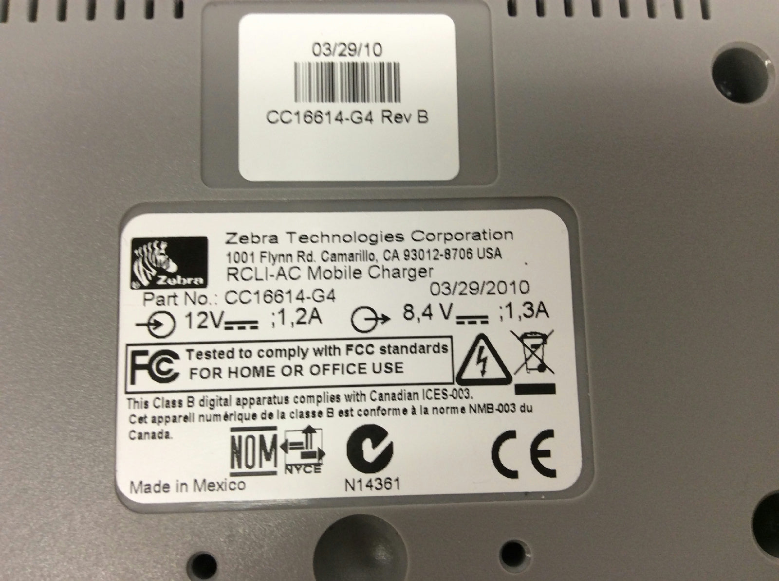 Zebra RCLI-AC 12V Li-Ion Battery Charger CC16614-G4